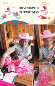 Celebrate Life08 theme for 2024 “From Prevention to Preparedness. Packing bags for our breast cancer awareness events and chemo infusion visits. A big shoutout to our amazing 92-year-old volunteer, (my mother) ensuring each bag is filled with the perfect ingredients. Today we packed 200 bags! And she’s asking for more. Together, we’re making a difference! #VolunteerHeroes
